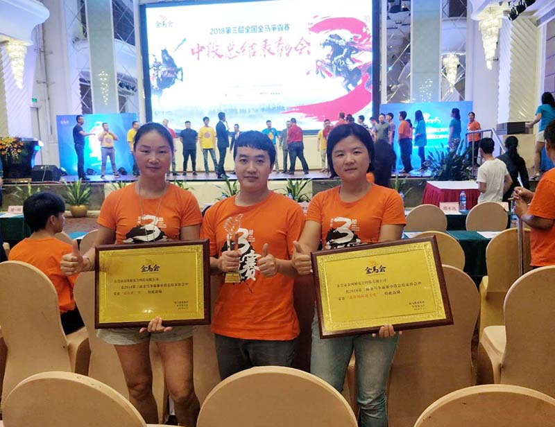 在中段总结中,金凤桥复合科技获得了两个奖项:“最佳团队进步奖”和“最佳推广奖”,金凤桥复合能在87家企业中脱颖而出,离不开网络团队紧密协作。“金马争霸”开始时,金凤桥复合就特别重视,希望把团队建设起来,同时把业绩提上来,多次开会探讨。