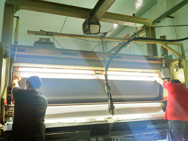 金凤桥面料复合加工的这台2.4M宽幅的设备是专门为服装复合面料而选购的,专用PUR热熔胶。这台设备在为客户解决宽幅问题的同时,还解决了环保和异味以及耐水洗的问题。
