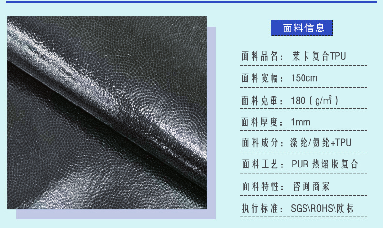 泳衣面料莱卡复合TPU优势二,柔软和透气,复合牢度高,不起泡,适合成衣等服饰和家纺用品。