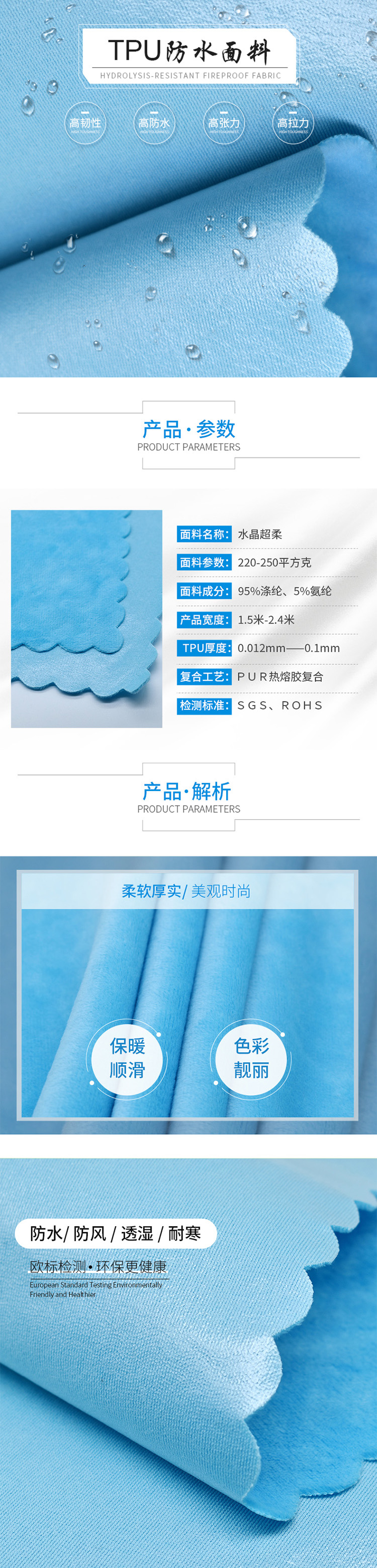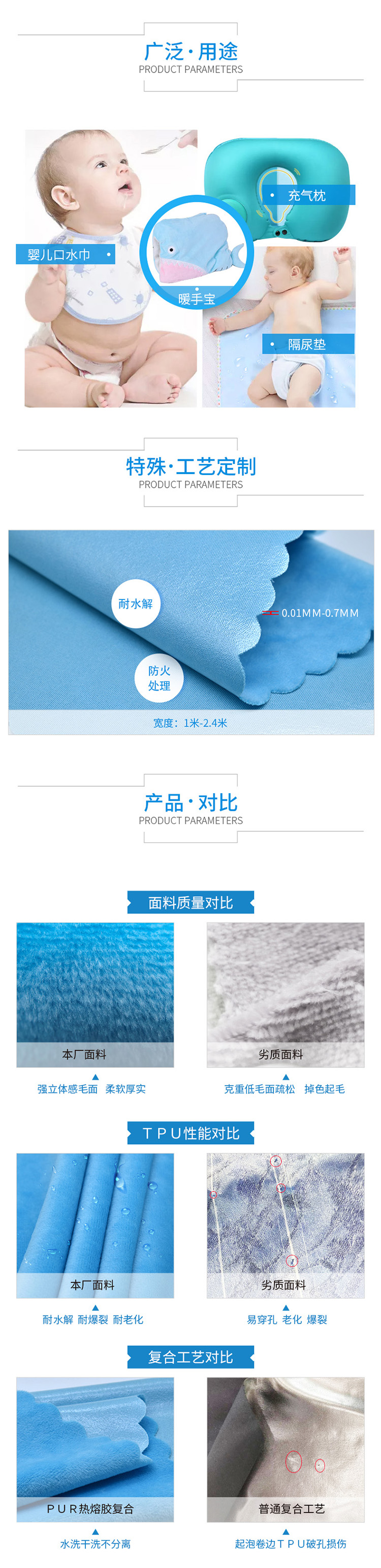 工 艺: PUR无溶剂复合技术,柔软耐水洗。