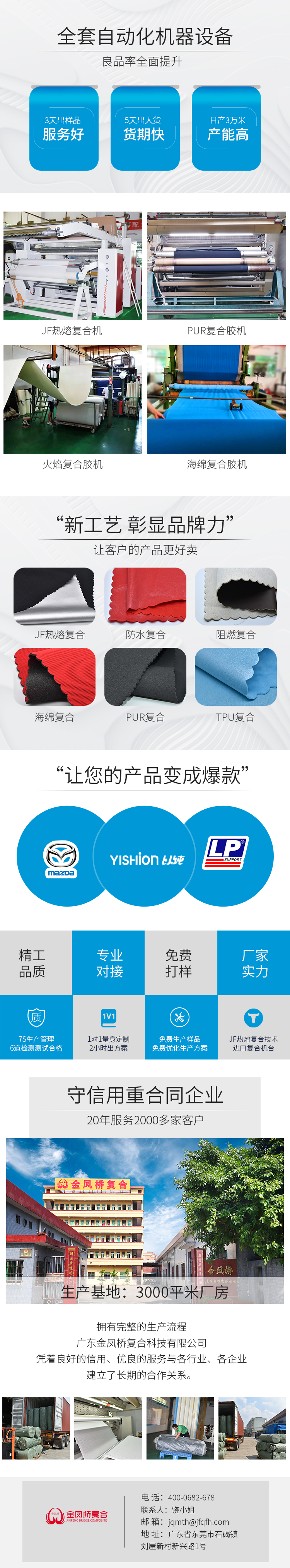 主营产品:TPU复合、服饰布料复合、泡棉复合、面料复合