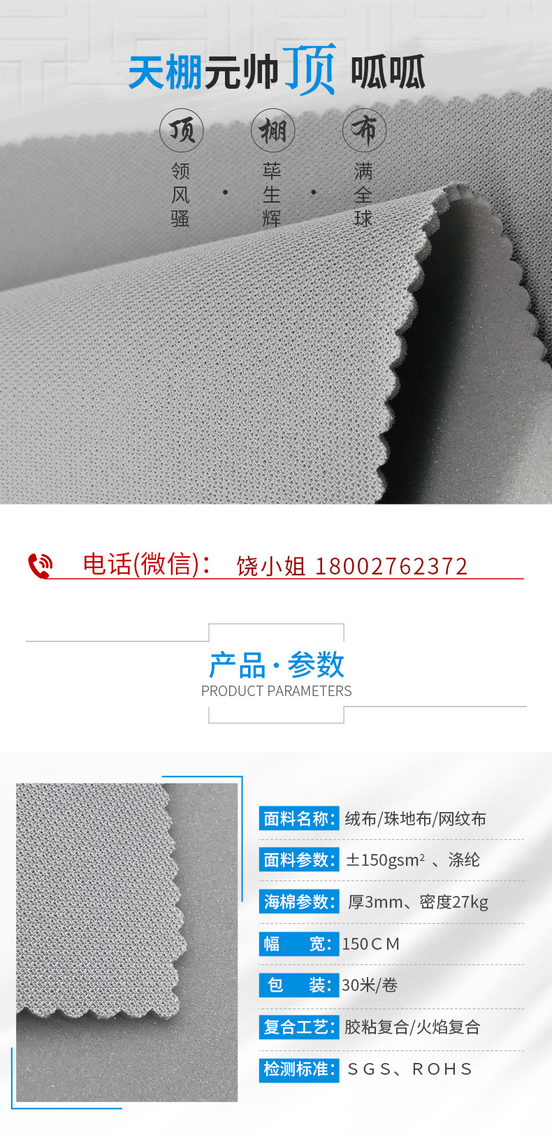 汽车顶棚布料+海绵
